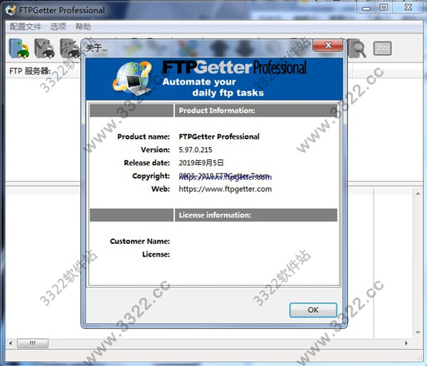 2、创建自动化任务:将文件和文件夹从本地光盘上载到服务器或将文件和文件夹从服务器下载到本地光盘。每个任务都有其他选项 - 上传和下载前的文件比较,保存文件修改时间,同步文件夹结构,删除源端成功处理的文件等.FTPGetter的一个重要功能是通过掩码进行文件批处理,这样你就可以使用名称与特定条件匹配的多个文件执行操作 - 例如仅上传到服务器具有html扩展名的文件或从服务器下载除bmp格式的图像之外的所有文件。