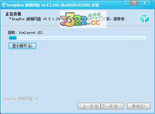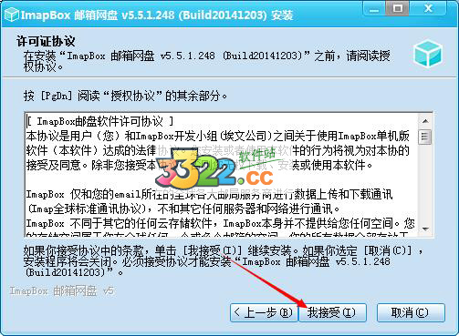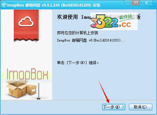 1、首先到本页面下方下载数据压缩包然后进行解压,解压出的文件夹里个“ImapBox.5.5.1_Build20141205_CHS_Bit32.exe”可执行文件,双击可执行文件进入安装,点击下一步如图