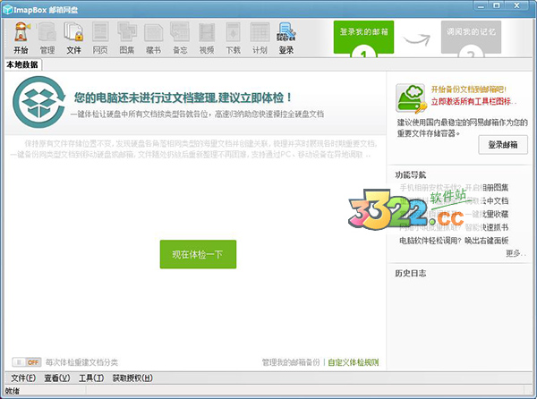 无论在任何地方,imapbox都能通过邮局与本地之间全速同步数据,并提供全功能的互联网精华数据采集、存储、共享与分发,是个人与企业的重要数据备份工具,支持桌面管理、磁盘光速搜索、拍照、抓取、打包、存储邮箱、共享、批量分发。