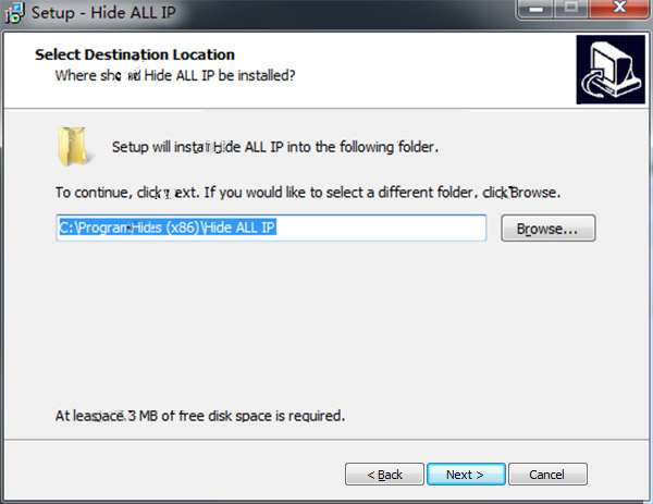 3、之后选择软件安装位置路径C:Program Files (x86)Hide ALL IP,并点击next