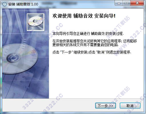1、解压安装包,双击运行“客所思辅助音效1.20.exe”安装程序,等待片刻弹出安装界面,点击“下一步”