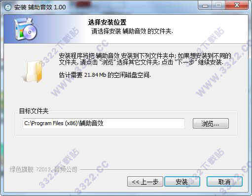 2、选择客所思辅助音效安装目录,可默认或可点击“浏览”更换安装路径,完成点击“安装”